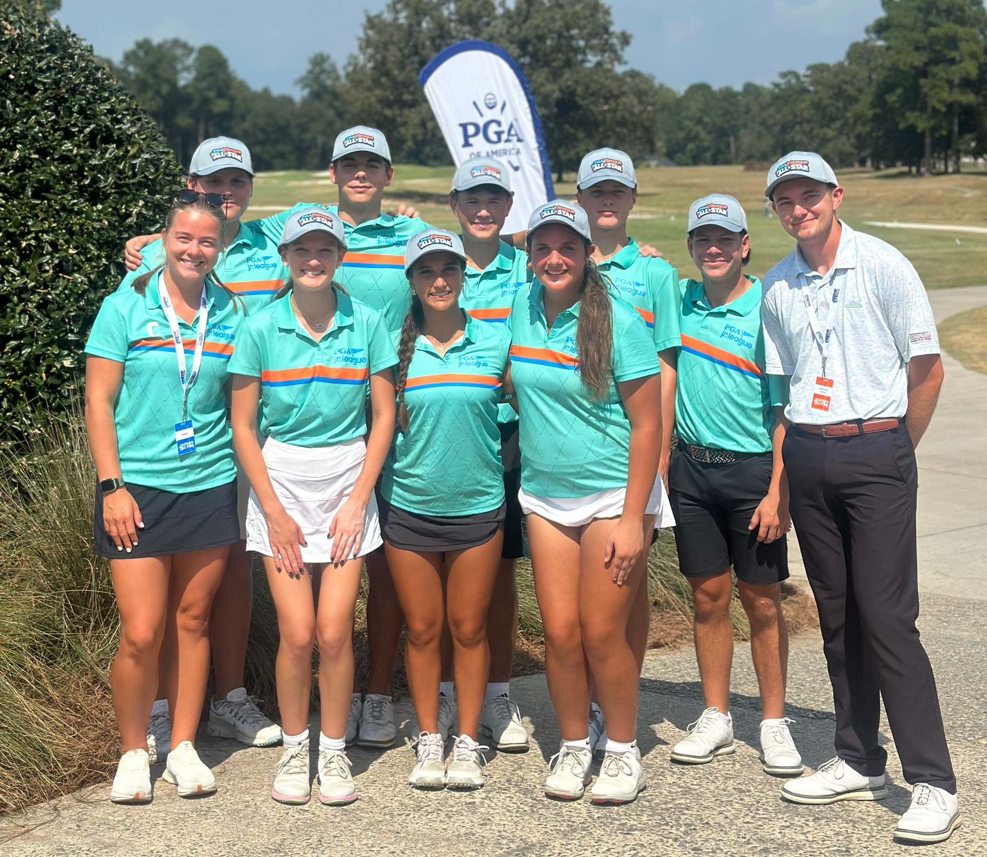 Our most popular summer program and the best entry point into real golf. Kids wear team jerseys, practice weekly, and play fun scramble-style matches that remove pressure and build confidence. PGA Junior League teaches teamwork, etiquette, course management, and on-course decision-making in a supportive environment. We strengthen the program each year by bringing in current college players to help coach practices and matches—adding energy, mentorship, and high-level insight.